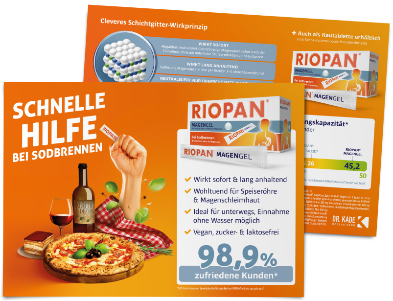 RIOPAN MAGENENGEL ist eine Initiative von RIOPAN für Apothekenteams. Unter dem Dach des RIOPAN MAGENENGEL finden Sie viele nützliche Informationen und Beratungswissen rund um Sodbrennen und RIOPAN sowie spannende Aktionen mit exklusiven Gewinn Chancen. So unterstützt DR. KADE Sie dabei, selbst zum RIOPAN MAGENENGEL zu werden und Ihre von Sodbrennen geplagten Kundinnen und Kunden zu retten!